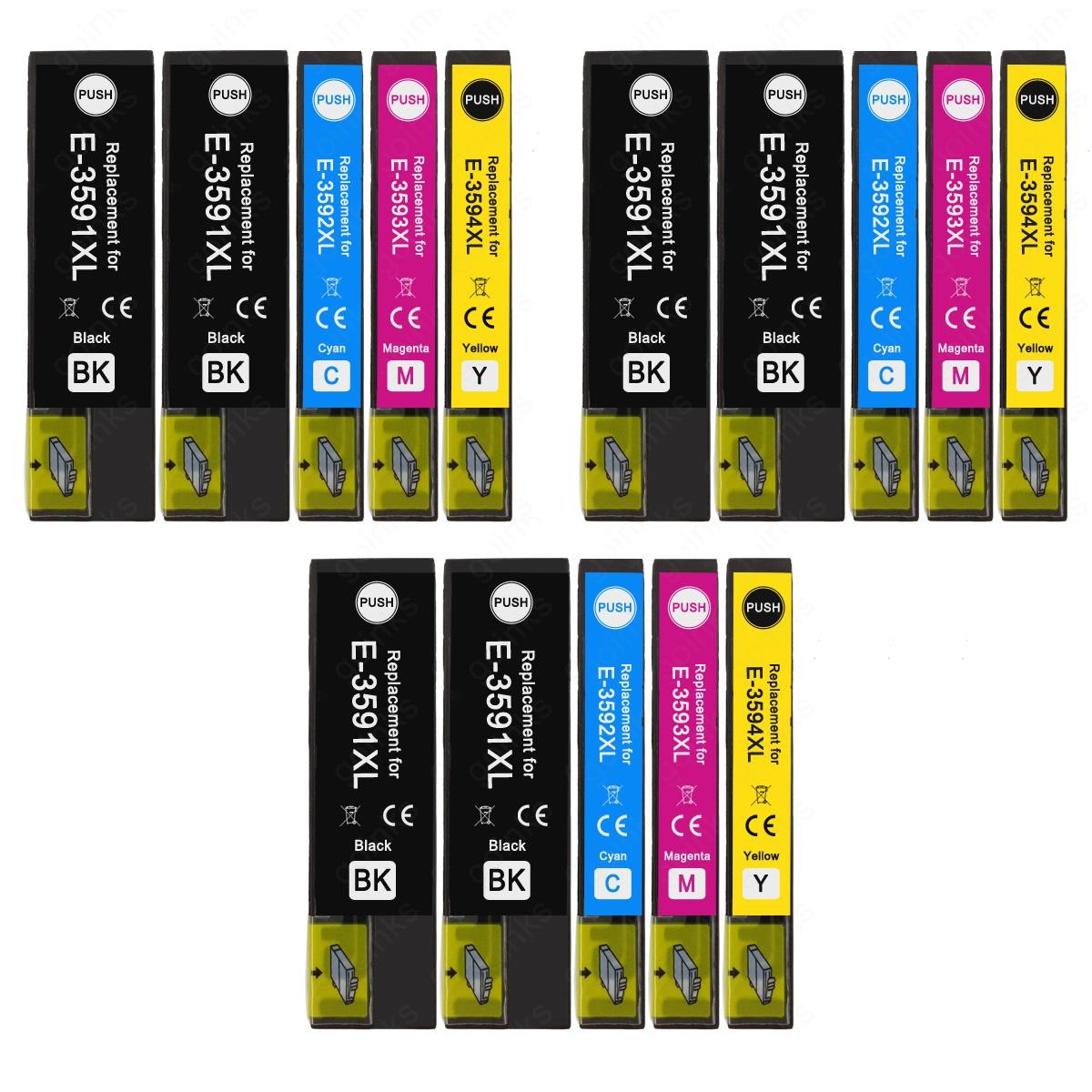 15 Ink Cartridges XL (Set+Bk) to replace Epson T3596 + T3591 (35XL) Compatible