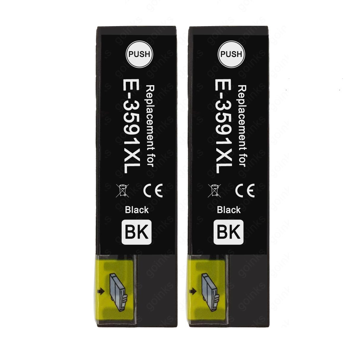2 Black XL Ink Cartridges to replace Epson T3591 (35XL) non-OEM / Compatible