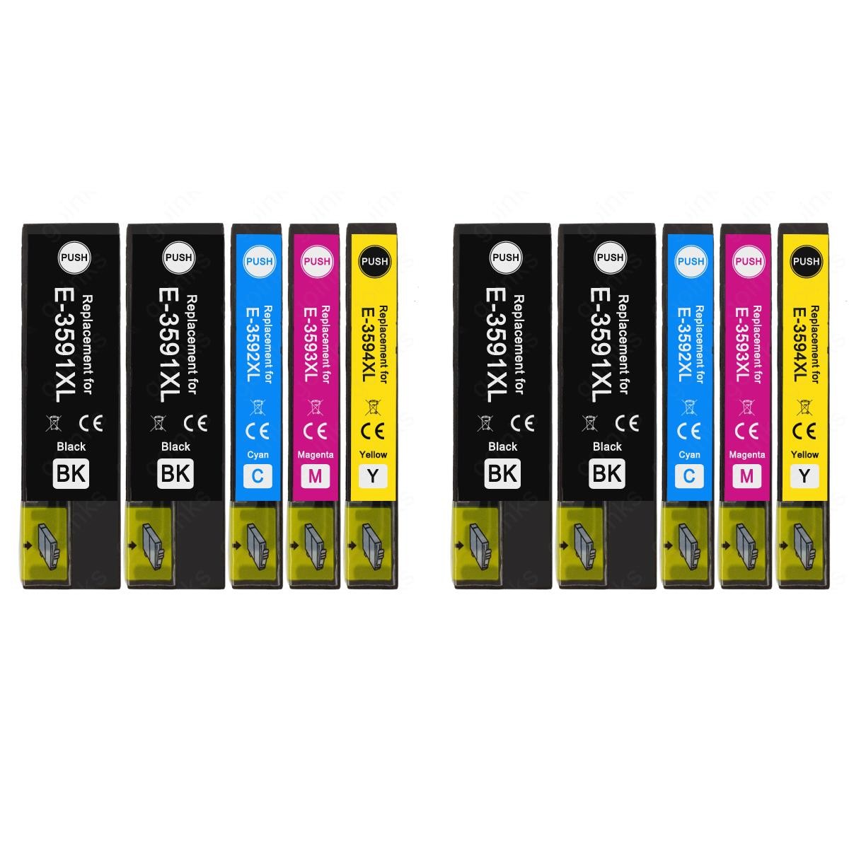 10 Ink Cartridges XL (Set+Bk) to replace Epson T3596 + T3591 (35XL) Compatible
