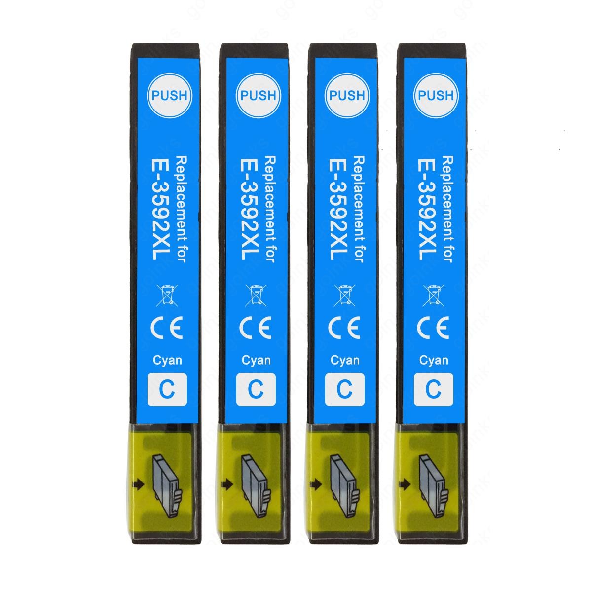 4 Cyan XL Ink Cartridges to replace Epson T3592 (35XL) non-OEM / Compatible