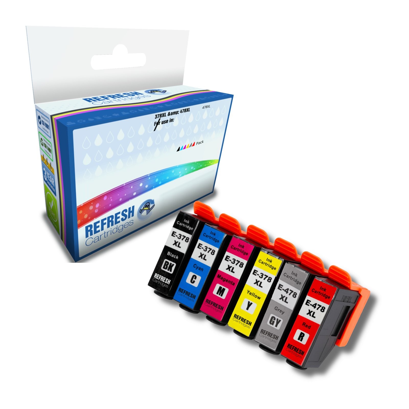 Refresh Cartridges Set Of 6 378XL & 478XL Ink Compatible With Epson Printers