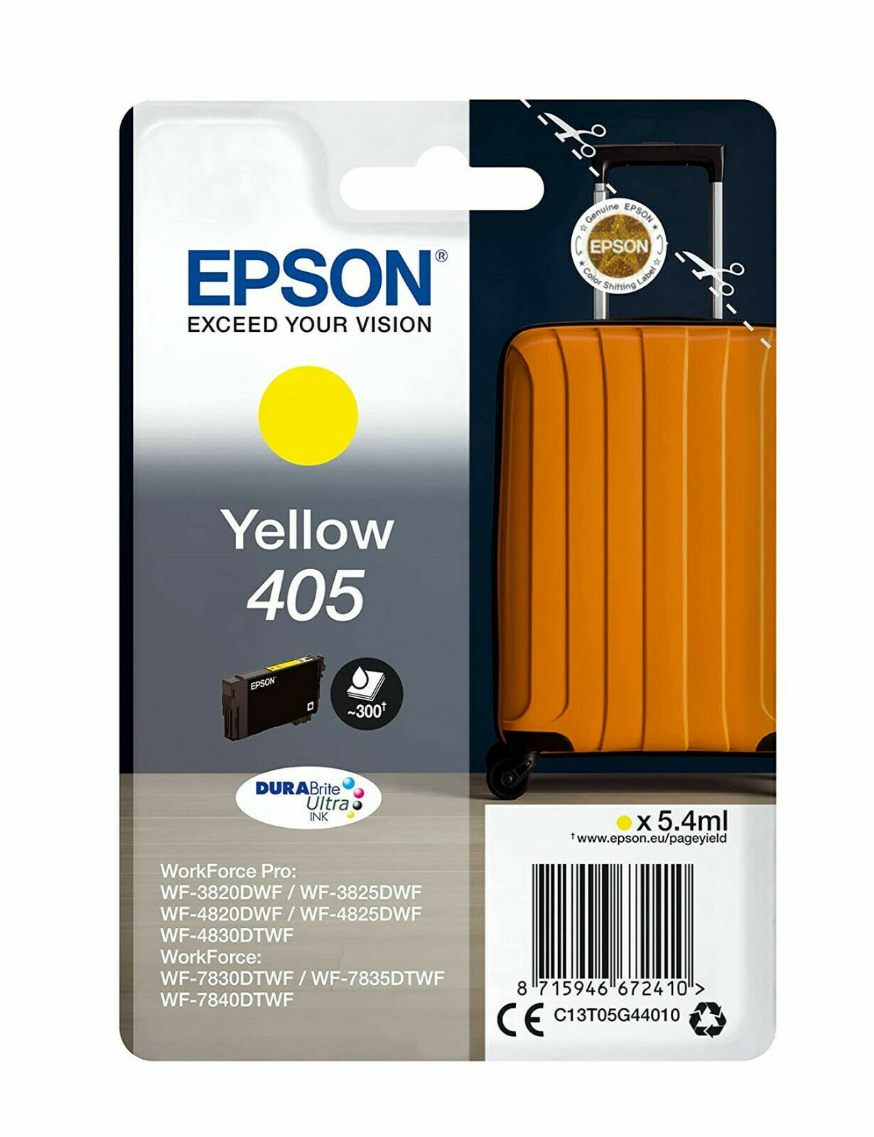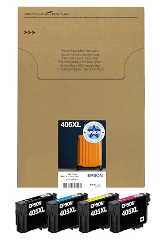 Epson 405XL Suitcase High Yield Genuine Multipack,Eco-Friendly Packaging, 4-colours Ink Cartridges, DURABrite Ultra Ink