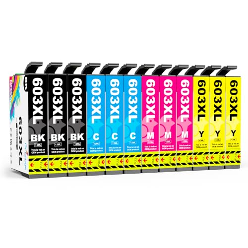 UPRIIN 12-Pack 603XL Ink Cartridges Multipack Replacement for Epson 603XL 603 Ink Expression Home XP-4105 XP-4100 XP-3100 XP-2105 XP-2100 Workforce WF-2810 WF-2830 WF-2835 WF-2850