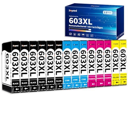 Zoyood 603 XL Ink Cartridges Compatible with Epson 603 603XL Multipack for Expression Home XP-2100 XP-2105 XP-3100 XP-3105 XP-4100 XP-4105 Workforce WF-2810 WF-2830 WF-2835 WF-2850 WF-2845, 15-Pack