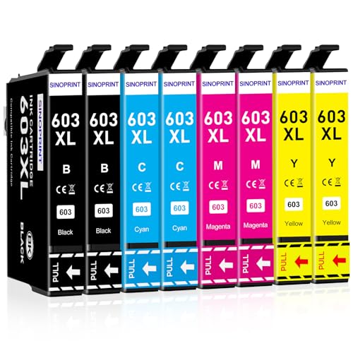 SINOPRINT 8-Pack 603XL Ink Cartridges Multipack Replacement for Epson 603 XL for Expression Home XP-3100 XP-4100 XP-2150 XP-2100 XP-2105 XP-3105 XP3155 XP4105 Workforce WF-2810 WF-2830 WF-2835 WF-2850
