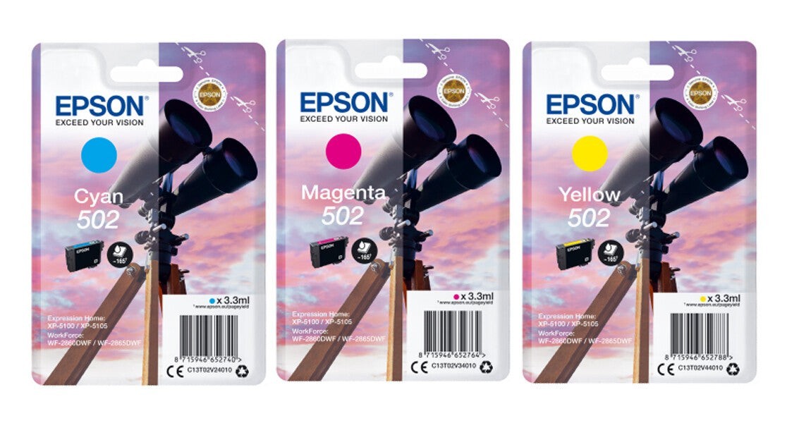 Genuine Epson 502, Binoculars Multipack Ink Cartridges, T02V2, T02V3, T02V4