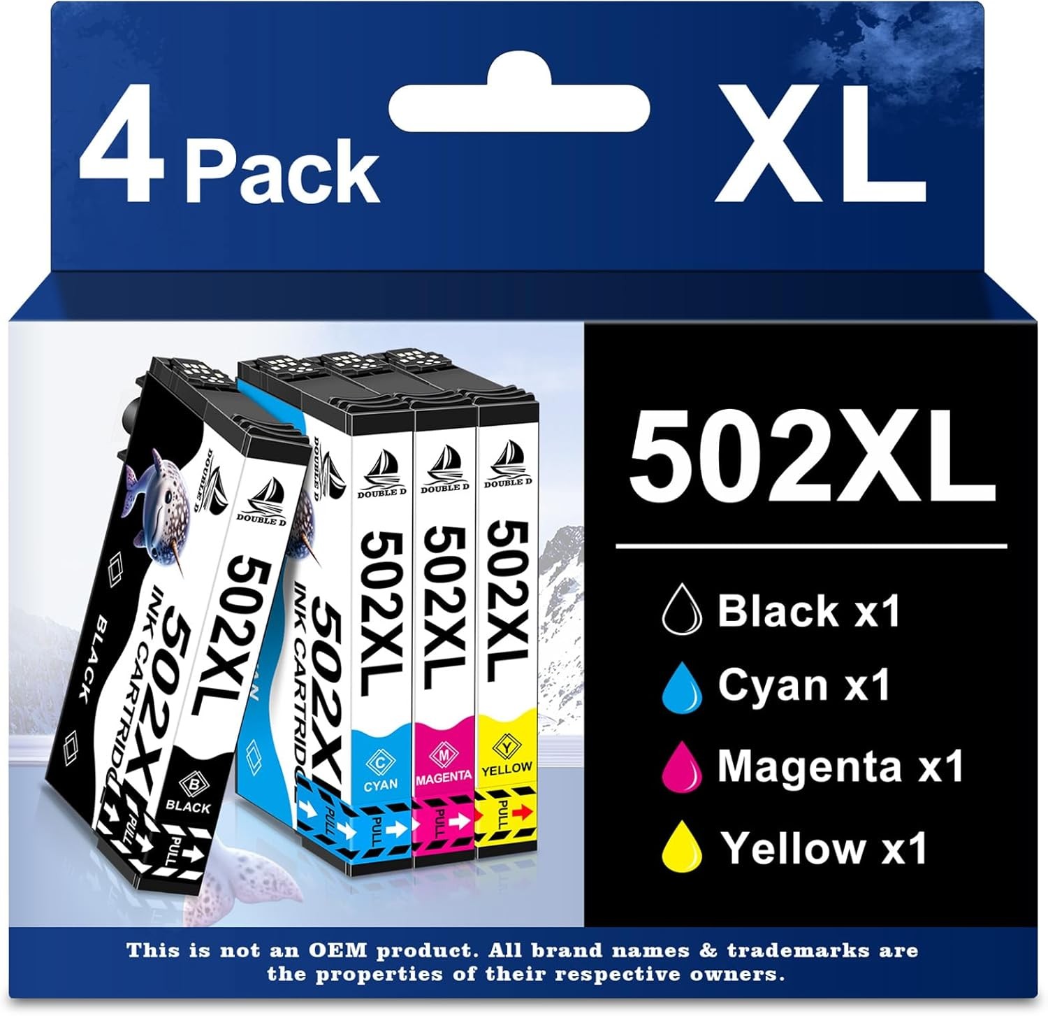 DOUBLE D 502XL Ink Cartridges for Epson 502 502XL Ink Multipack, Work for Epson