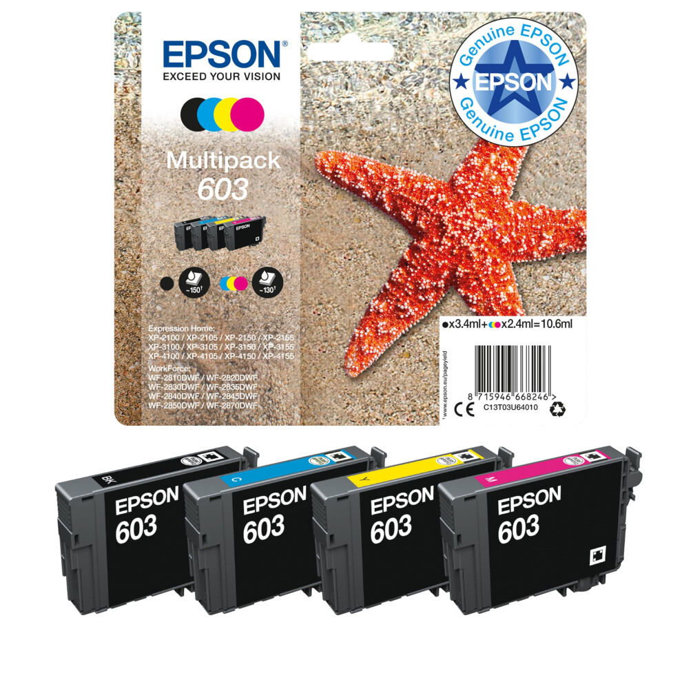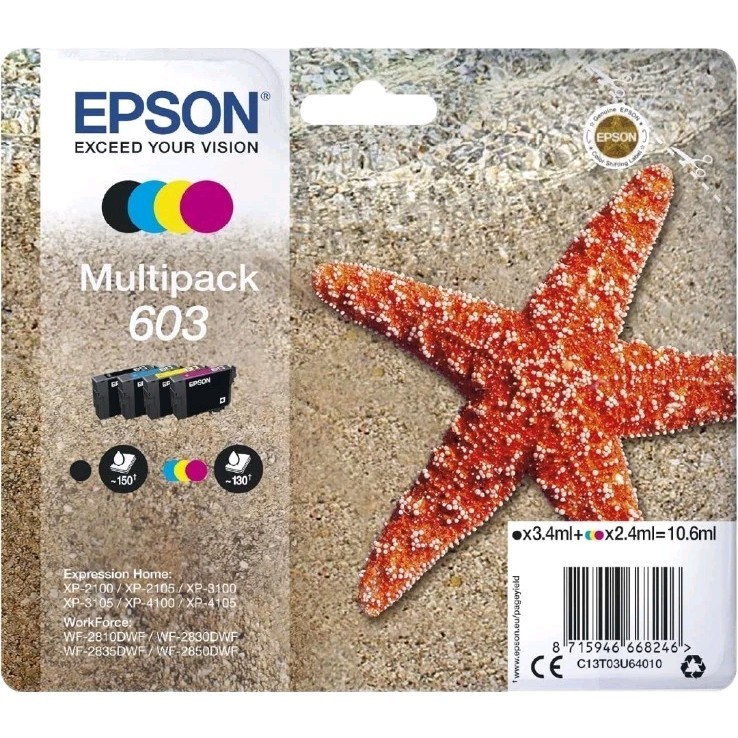 Epson 603 Starfish Genuine , 4-Colours Multipack Ink Cartridges