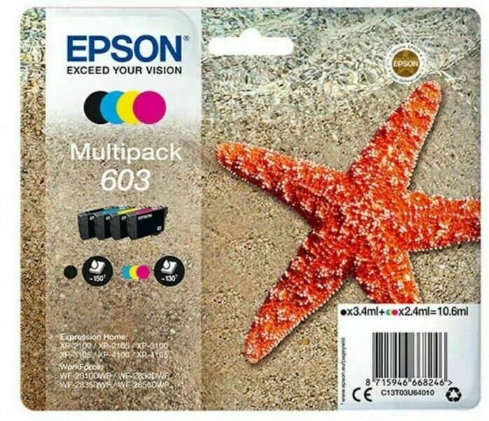 Epson 603 Ink Cartridges Multipack Starfish Series Genuine 4-Colours Brand New
