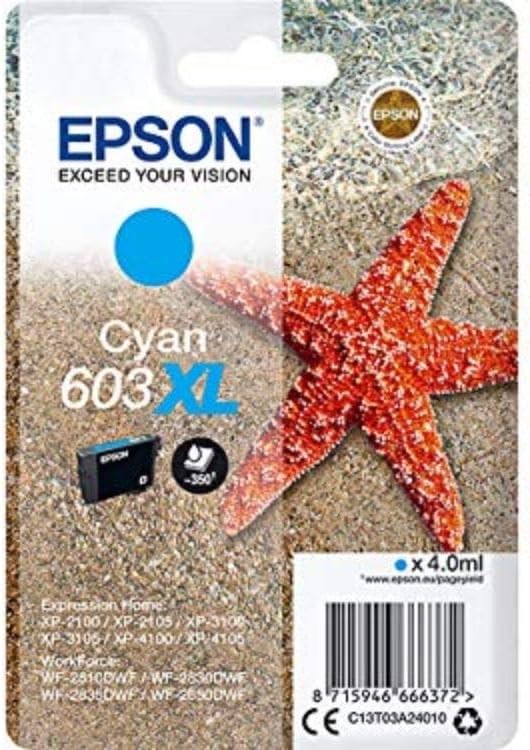 Epson 603XL Cyan Starfish High Yield Genuine, Ink Cartridge, Amazon Dash Repleni