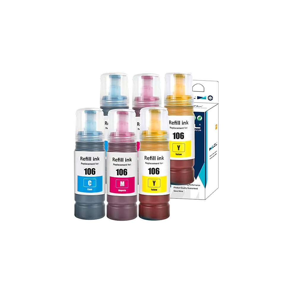 Compatible Ink Bottle Replacement for Epson 106 C13T00R240 C13T00R340 C13T00R440 ET-7700 ET-7750 Printers (6PK 2C2M2Y)