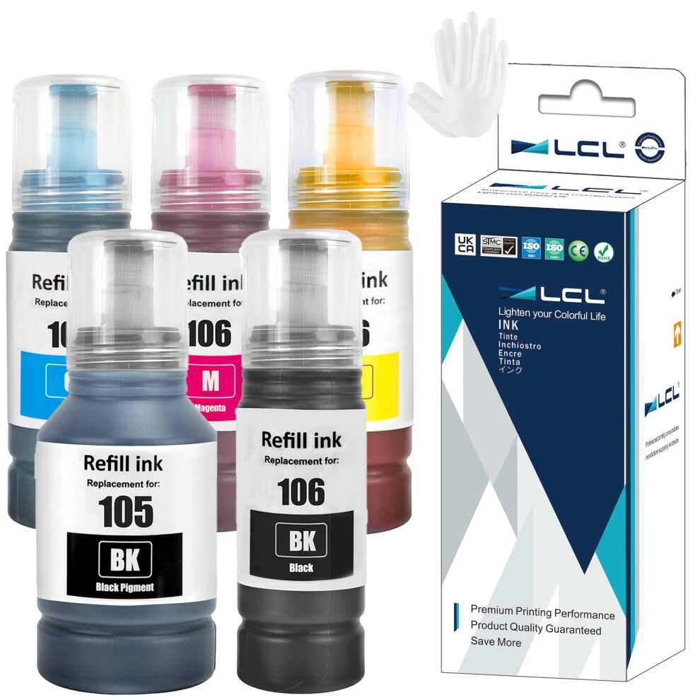 105 106 Ink Compatible with Epson 105 106 Ink Cartridges Bottle Multipack for EP L-7160 L-7180 ET-7700 ET-7750 (5 Pack,
