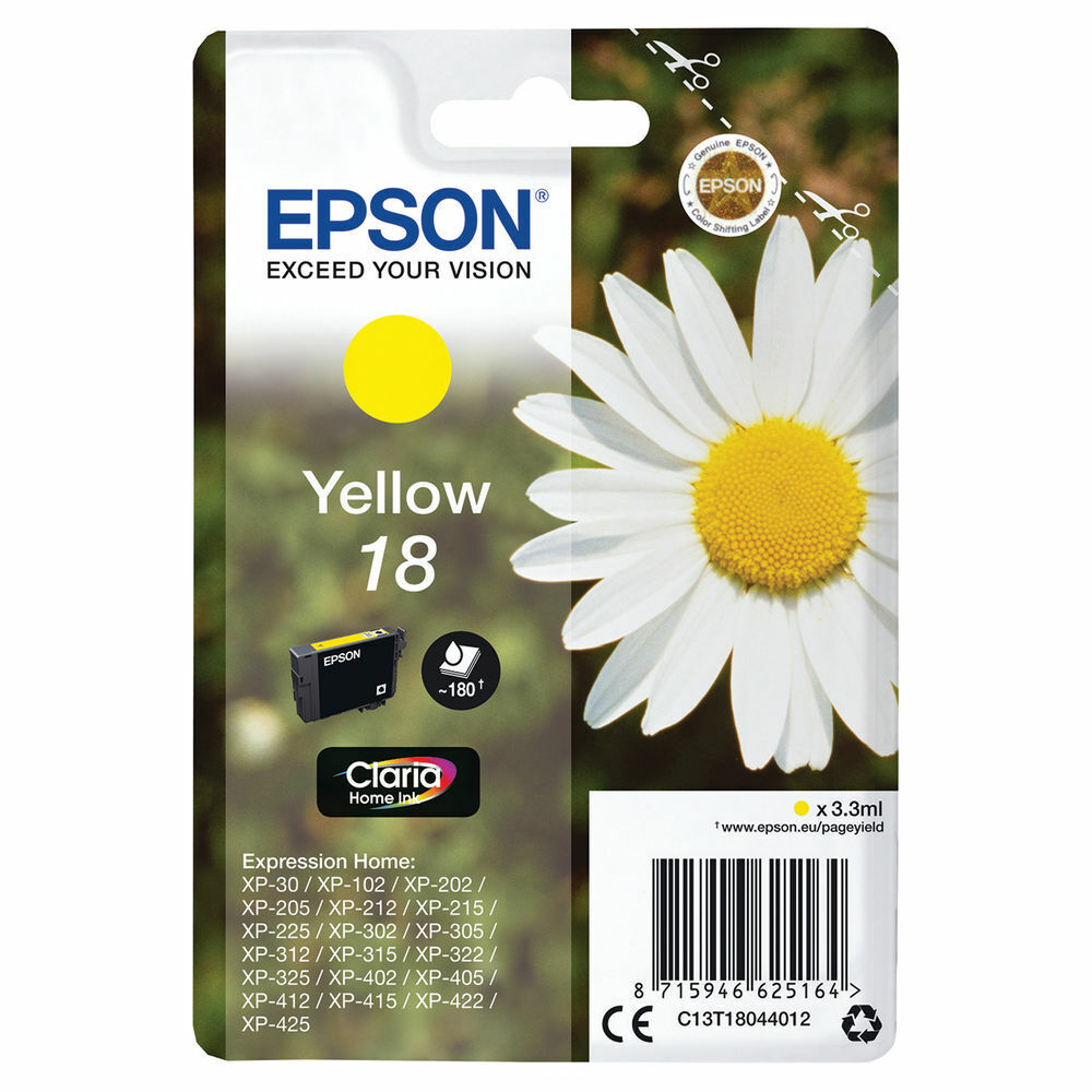 T1804 Epson 18 Genuine Yellow Ink Cartridge Daisy Expression Home XP-202 XP-425