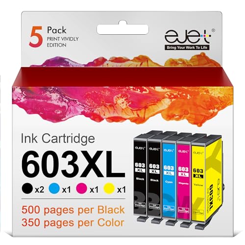 ejet 603XL Compatible Ink Cartridge Replacement for Epson 603 603XL for Expression Home XP-3100 XP-4100 XP-2100 XP-2105 XP-3105 Workforce WF-2810 WF-2830 WF-2835 WF-2850(B/C/M/Y, 5-Pack)