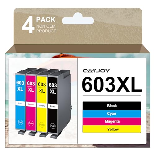 CATJOY 603XL Ink Cartridges Multipack Replacement for Epson 603 XL for Expression Home XP-3100 XP-4100 XP-2100 XP-2105 XP-3105 Workforce WF-2810 WF-2830 WF-2835 (Black Cyan Magenta Yellow,4-Pack)