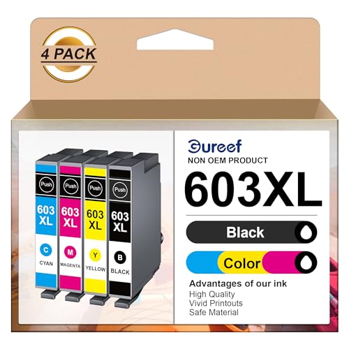 Gureef 603XL Ink Cartridges Multipack Replacement for Epson 603 XL for Expression Home XP-3100 XP-4100 XP-2100 XP-2105 XP-3105 Workforce WF-2810 WF-2830 WF-2835 WF-2850 Printer (B/C/M/Y, 4-Pack)