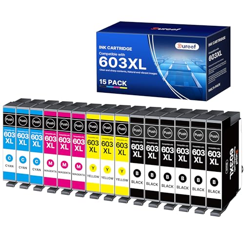 Gureef 603XL Ink Cartridges Multipack Replacement for Epson 603XL 603 Compatible with Epson XP-3100 Printer, Expression Home XP-4100 XP-3105 XP-2100 Workforce WF-2830 WF-2835 Printer(B/C/M/Y,15-Pack)