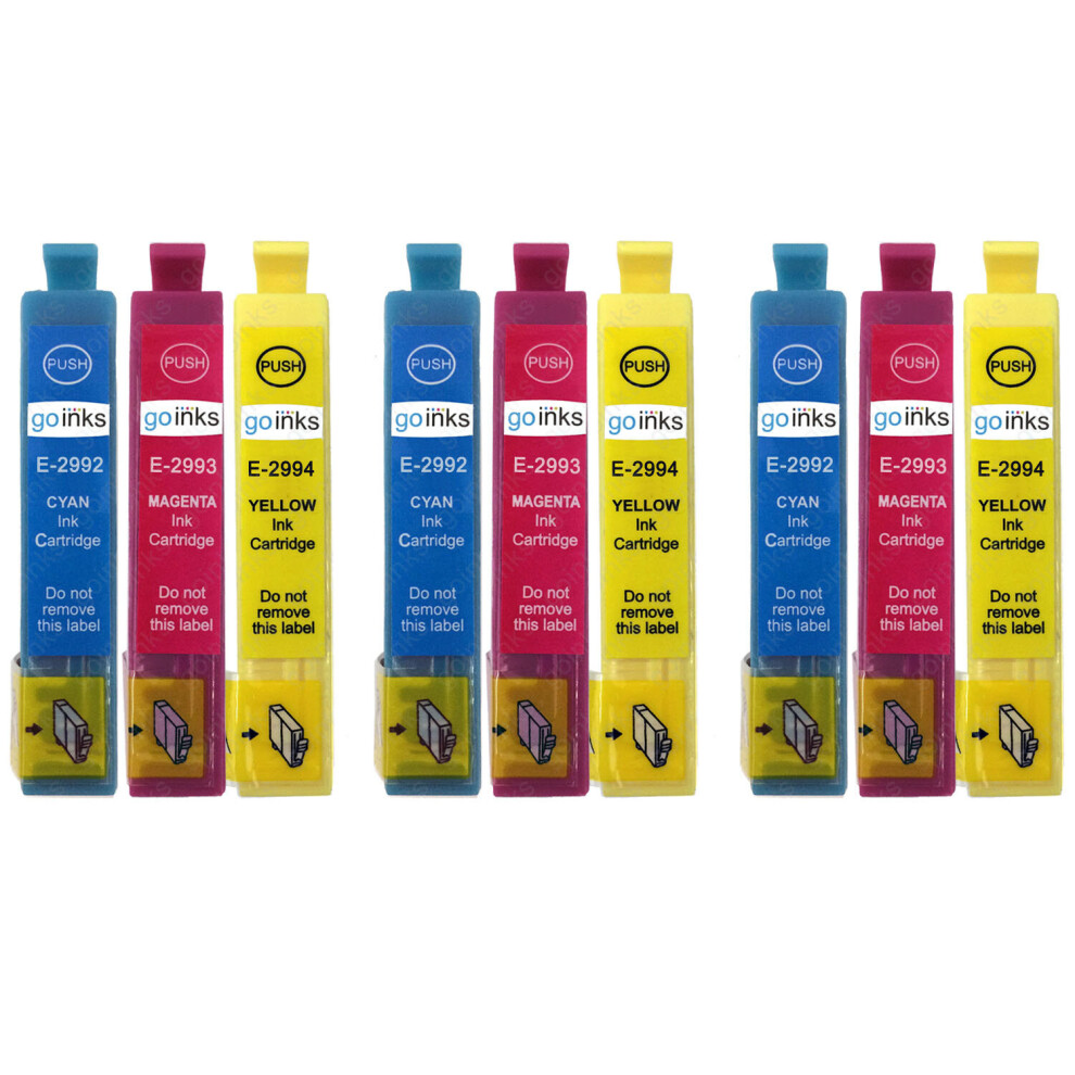 Compatible 3 Go Inks Set of 3 Ink Cartridges to replace Epson T2996 (29XL Series) C/M/Y / non-OEM for Epson Expression Home Printers (9 Inks)