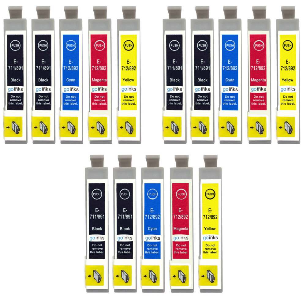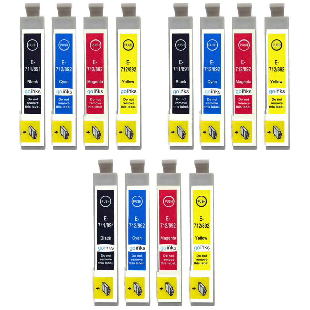 Compatible 4 Go Inks Set of 3 Ink Cartridges to replace Epson T0715 C/M/Y / non-OEM for Epson Stylus Printers (12 Inks)