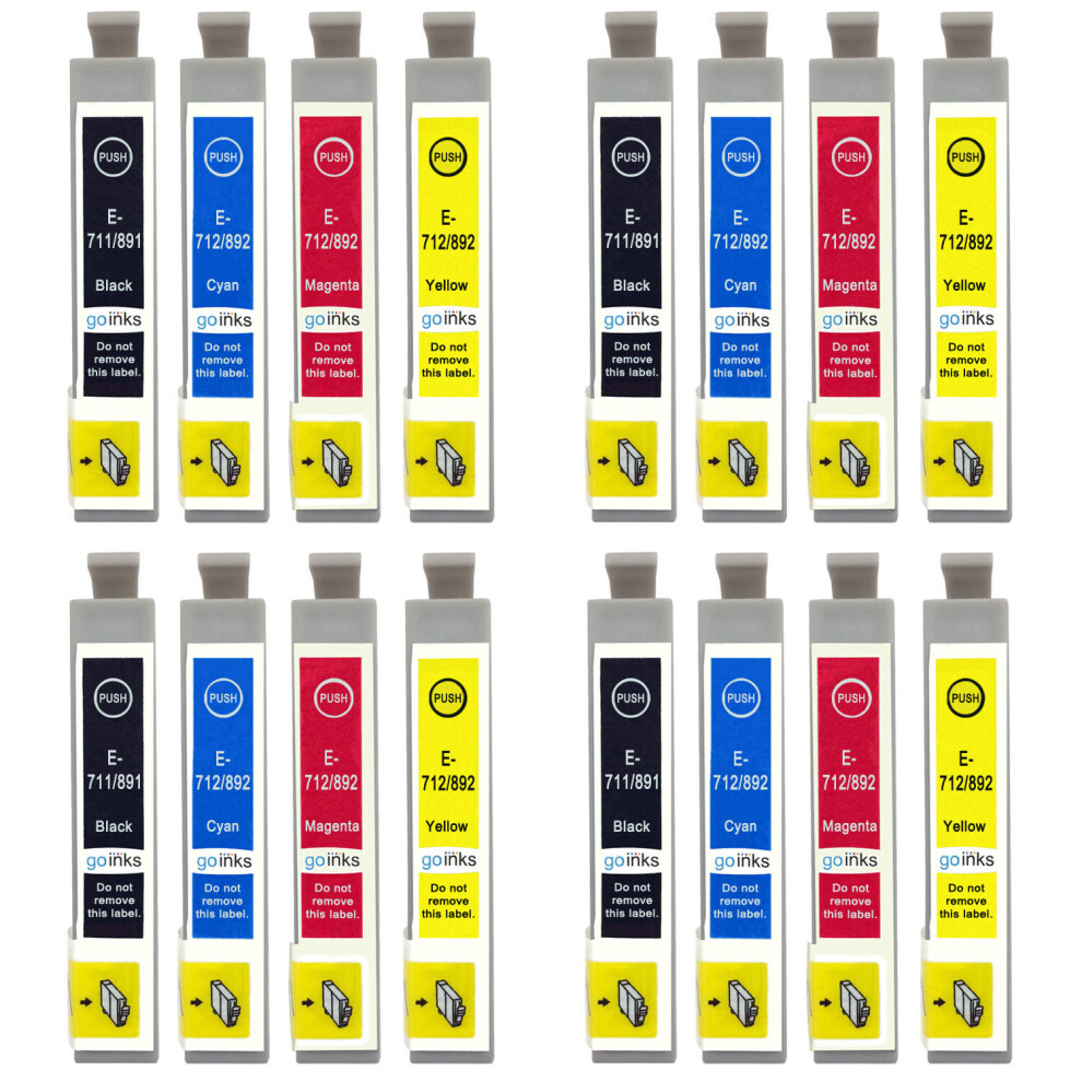 Compatible 4 Go Inks Set of 4 Ink Cartridges to replace Epson T0715 / non-OEM for Epson Stylus Printers (16 Inks)