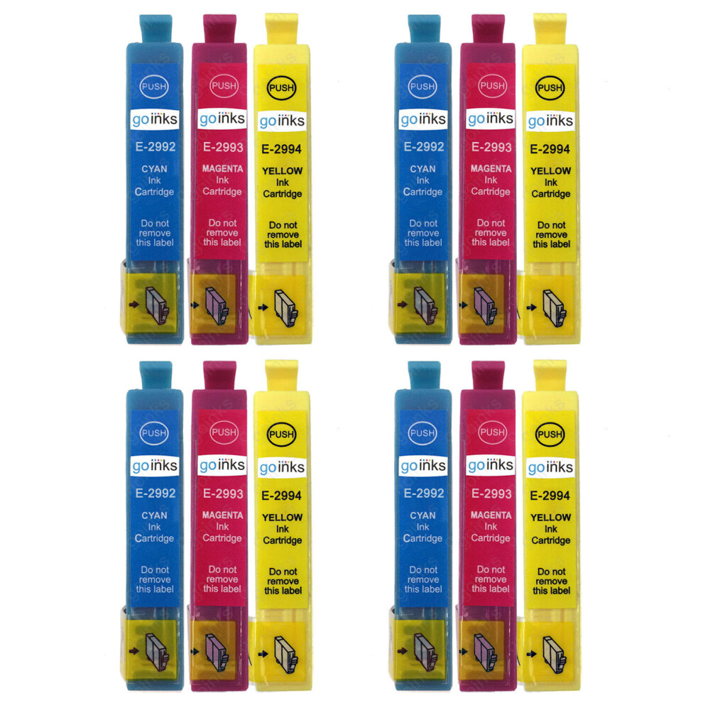 Compatible 4 Go Inks Set of 3 Ink Cartridges to replace Epson T2996 (29XL Series) C/M/Y / non-OEM for Epson Expression Home Printers (12 Inks)