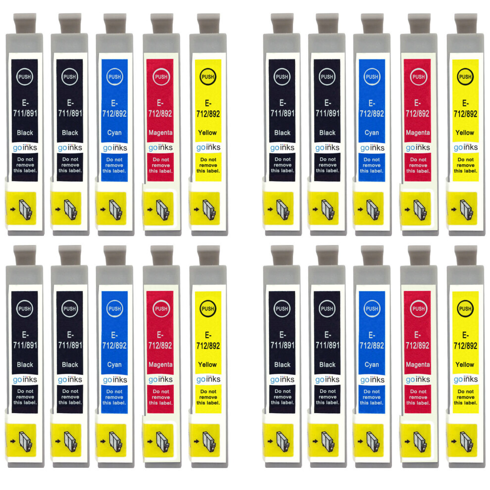 Compatible 4 Go Inks Set of 4 + extra Black Ink Cartridges to replace Epson T0715+711 / non-OEM for Epson Stylus Printers (20 Inks)
