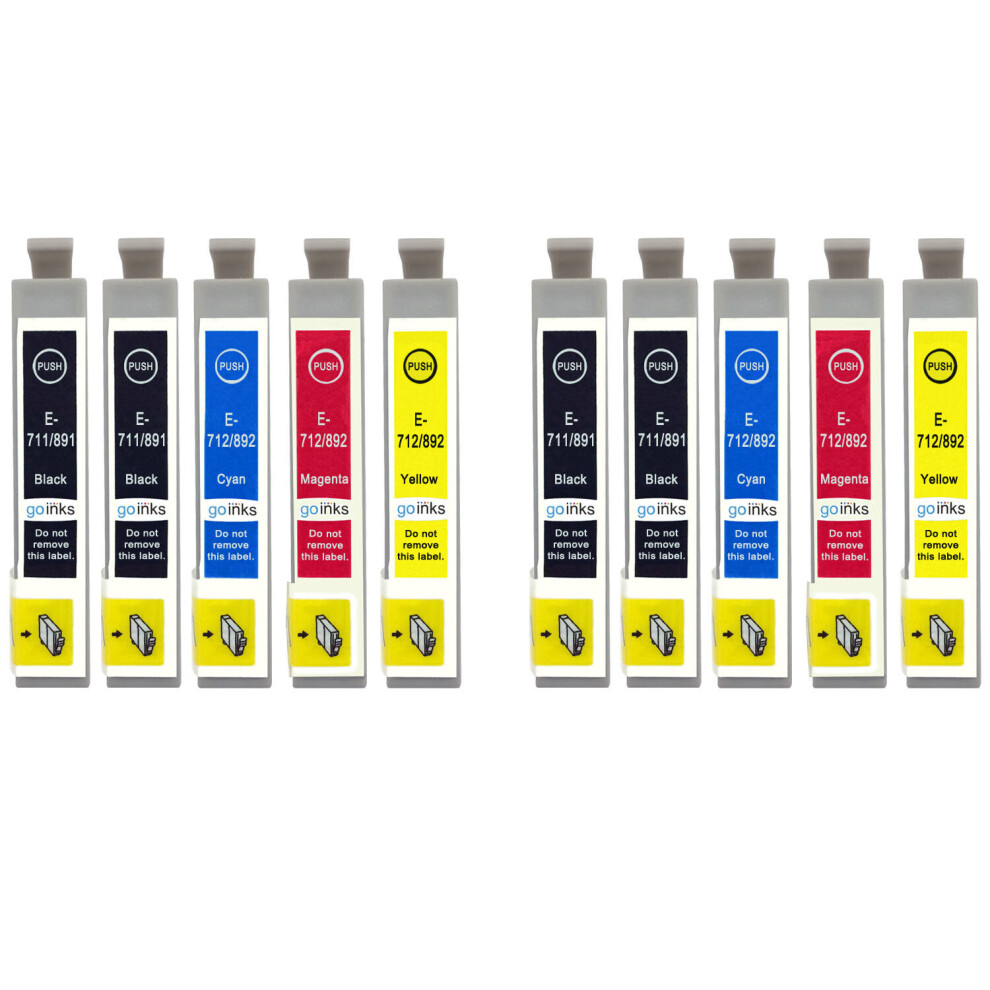 Compatible 2 Go Inks Set of 4 + extra Black Ink Cartridges to replace Epson T0715+711 / non-OEM for Epson Stylus Printers (10 Inks)