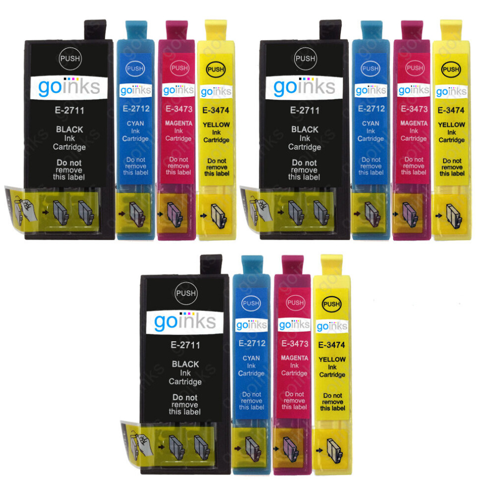 Compatible 3 Go Inks Set of 4 Ink Cartridges to replace Epson T2715 (27XL Series) / non-OEM for Epson Workforce Printers (12 Inks)