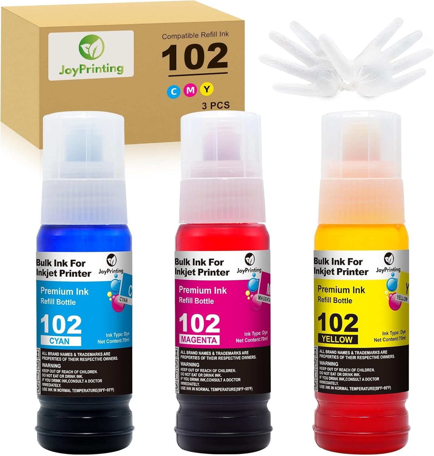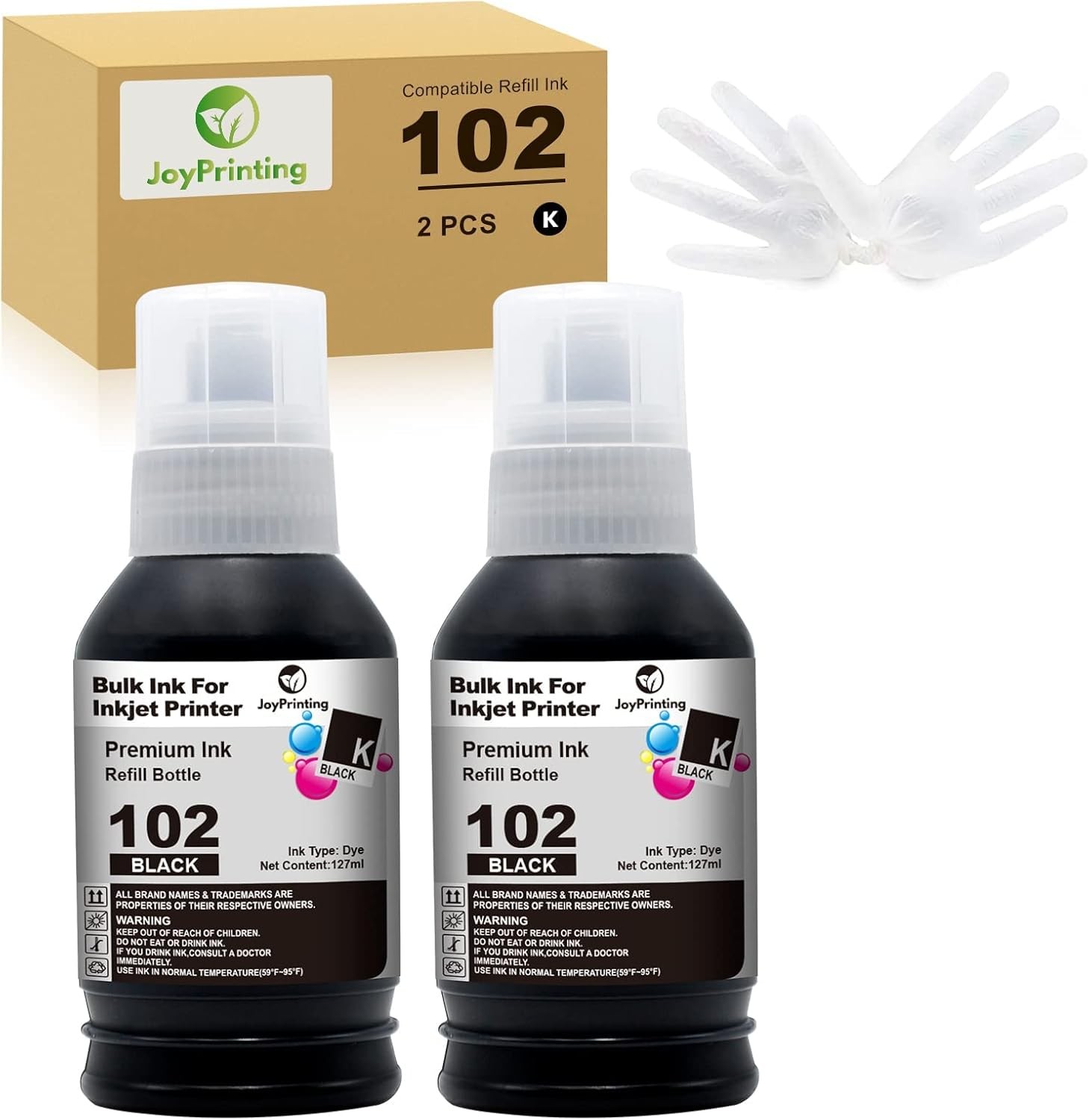 JoyPrinting 102 Ink Replacement for Epson 102 Ink Bottle Refills Compatible with Epson EcoTank ET-2750 ET-2700 ET-2756 ET-2850 ET-2856 ET-2851 ET-3700
