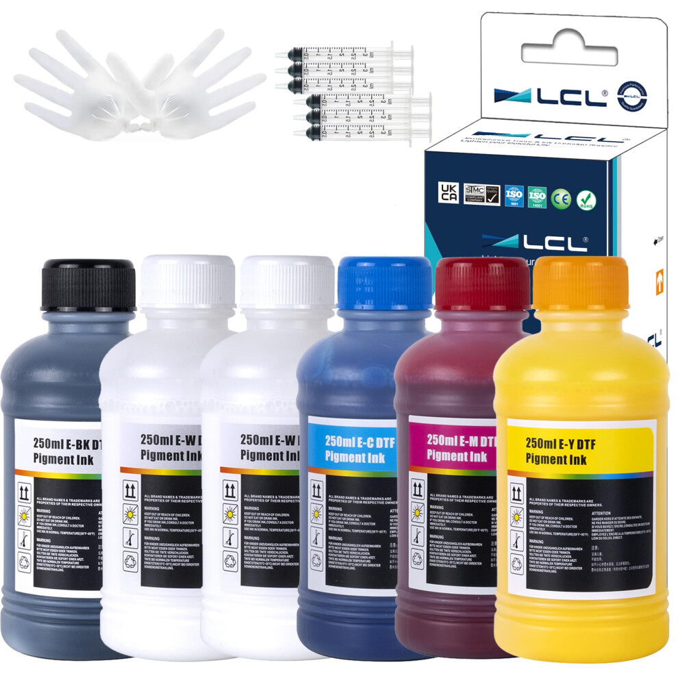 LCL 1500ML Premium DTF Ink Refill for Inkjet Printers Heat Transfer Film Printing (250ml x 6 CMYK 2Wh) Replacement for Epson L800L1800 L805 R1390 4720