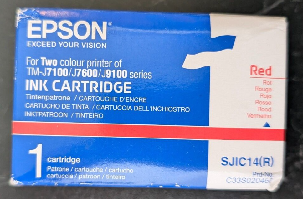 2 x Epson SJIC14(R) Red Ink Cartridge for TM-J7100 J7600 J9100 series Inc VAT