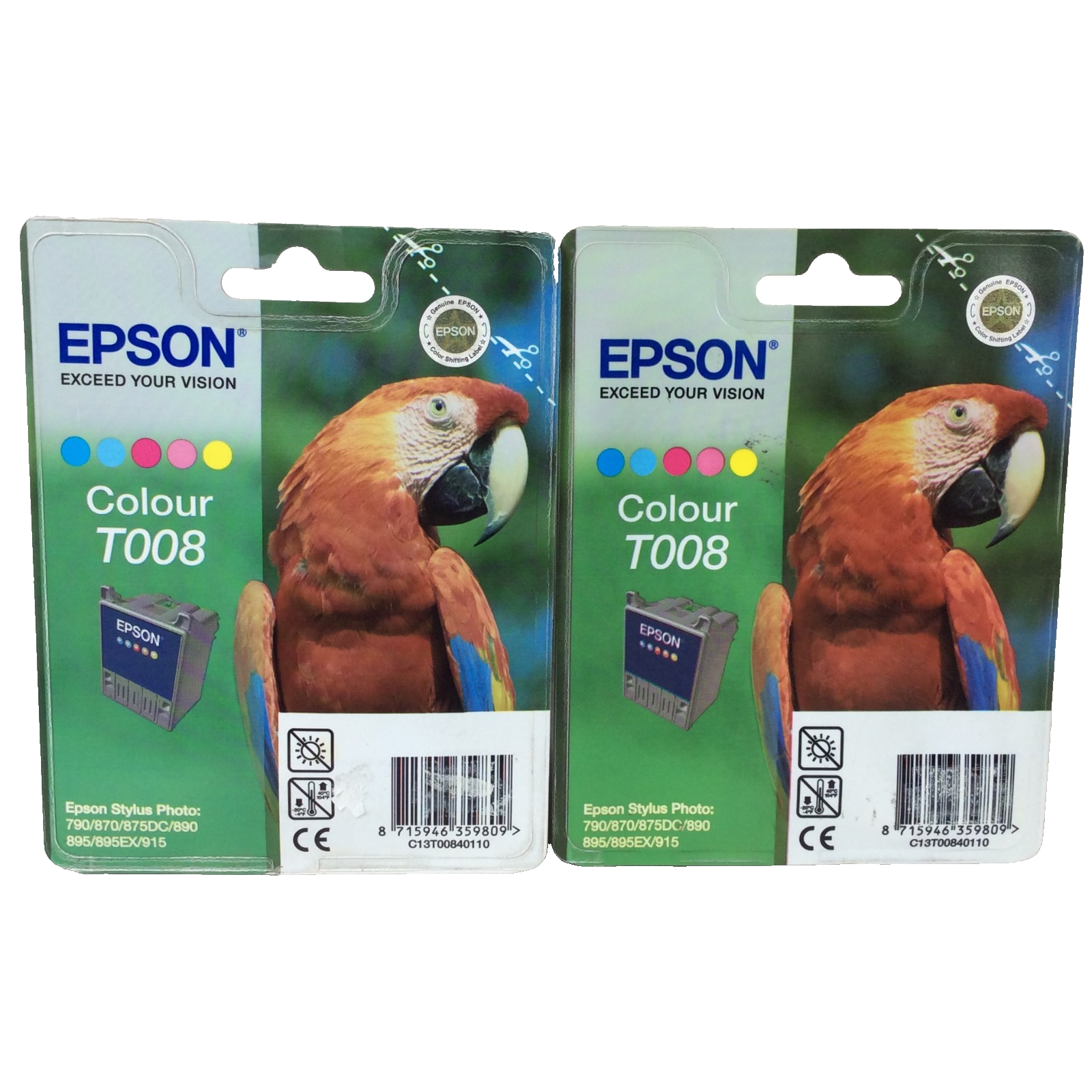 Genuine Epson T008 Colour x2 Ink Cartridges - Pair of - NEW SEALED