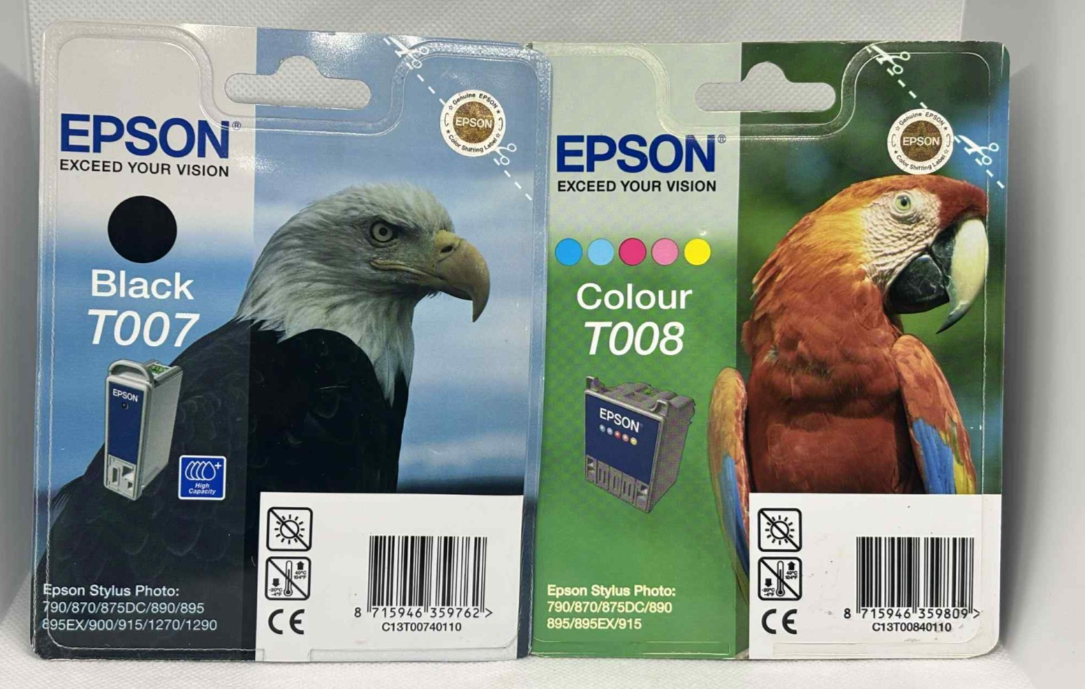 Epson Black T007 Black C13TOO740110 & T008 Colour Ink C13T00840110 - Sealed