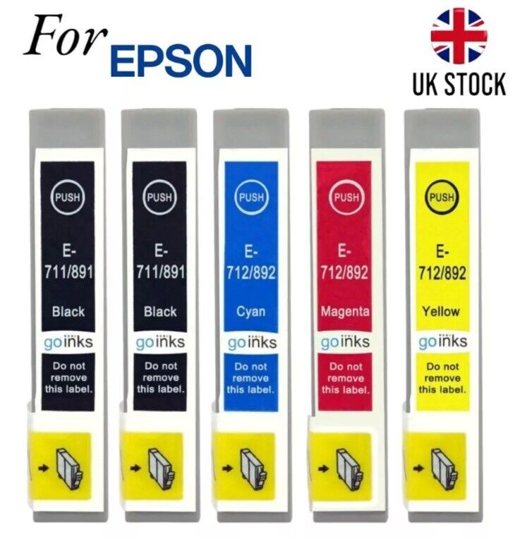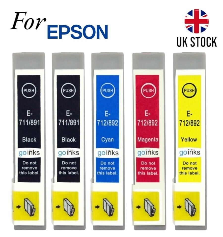 5 non-OEM Ink Cartridges to replace Epson T0711, T0712, T0713, T0714 (T0715)