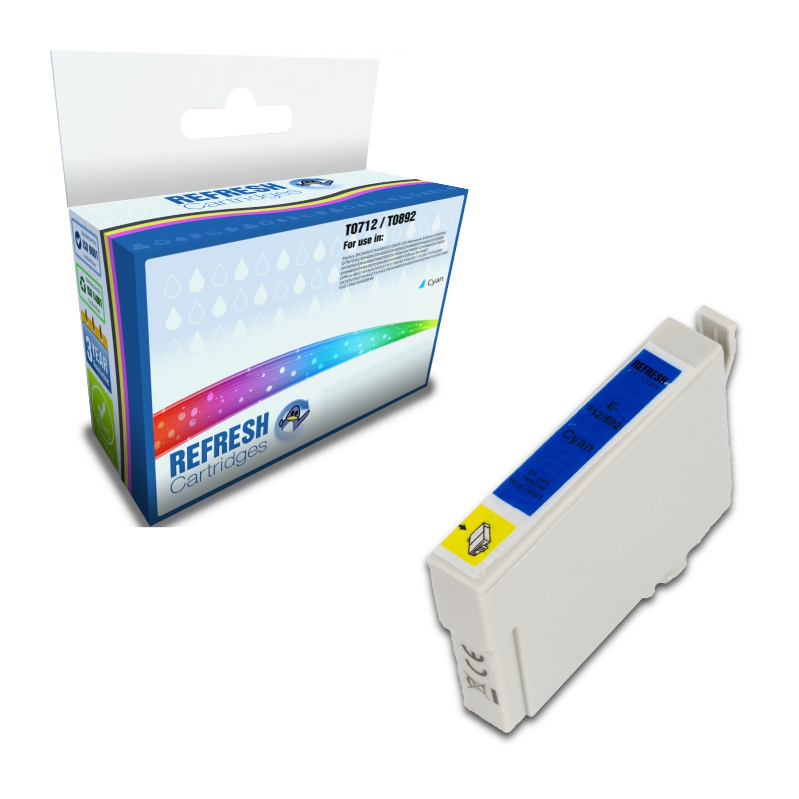 Refresh Cartridges Cyan T0712/T0892 Ink Compatible With Epson Printers