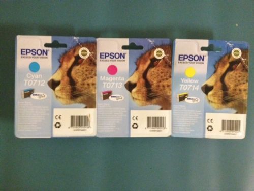 Collection of 3 genuine Epson cyan T0712 magenta T0713 yellow T0714 (T0715) BN