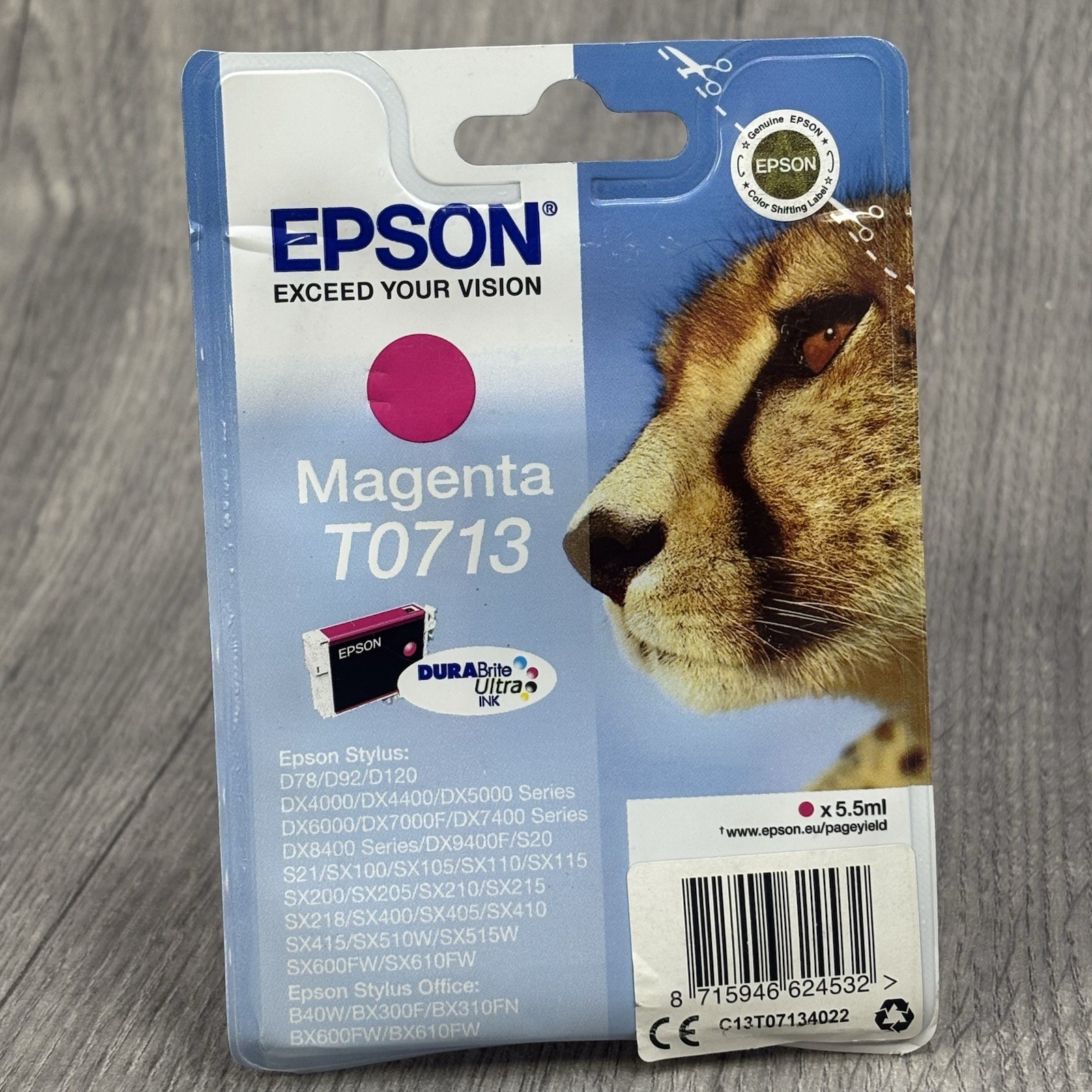 Epson T0713 Cheetah Magenta Genuine Ink Cartridge C13T07134012 for Stylus DX4000