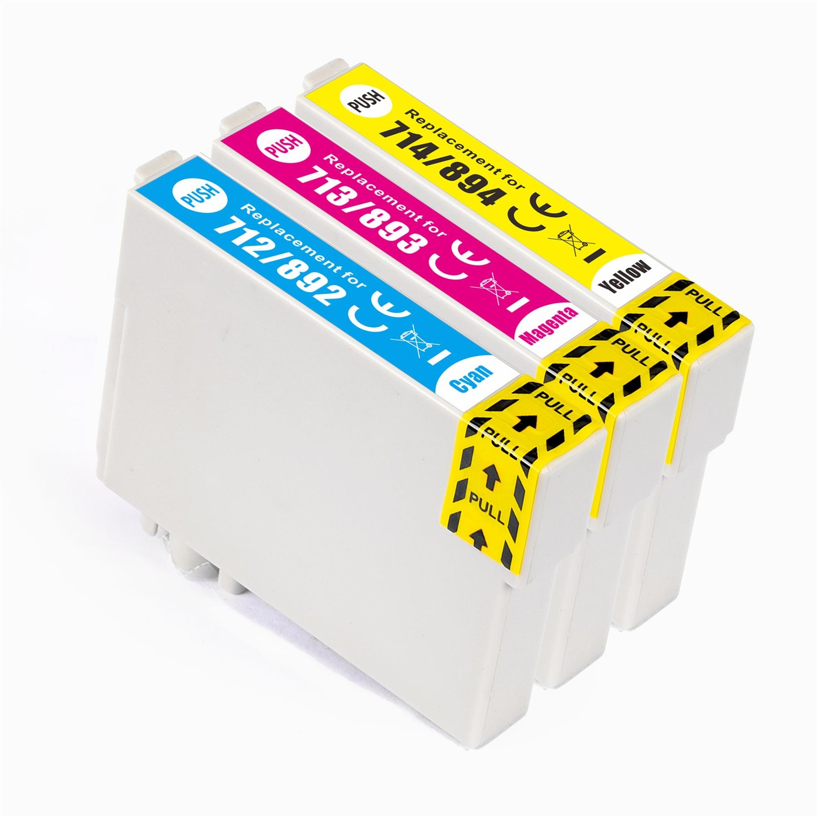 Remanufactured Colour Valuepack of T0712-T0714 or T0892-T0894 - 3x Colour Replacement Ink Cartridges for Epson Printers