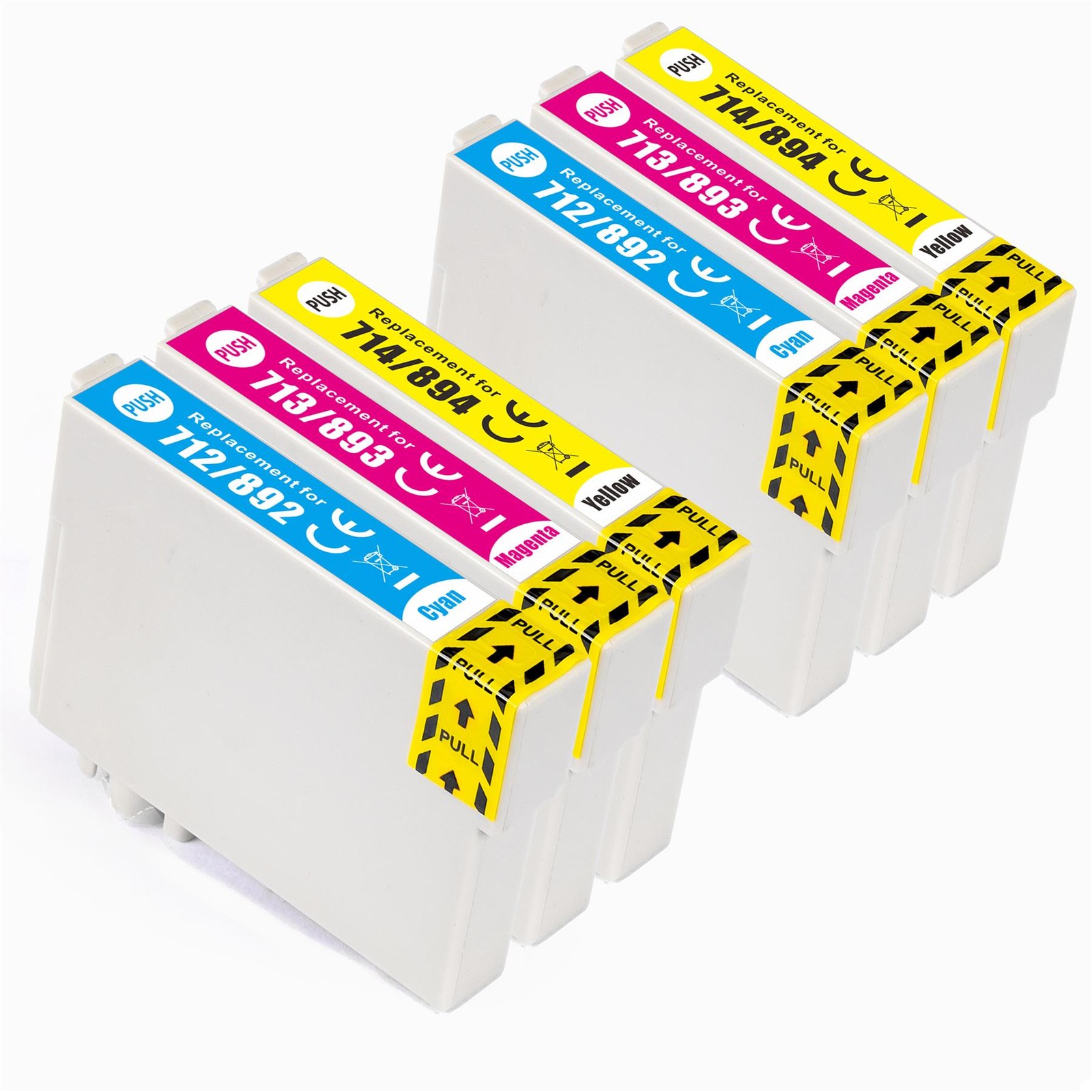 6 C/M/Y non-OEM Ink Cartridges to replace Epson T0712, T0713, T0714 Colours