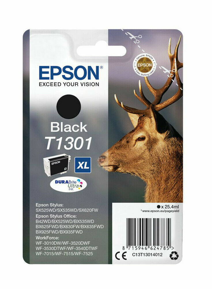 Epson T1301 Black, Genuine Ink Cartridge for BX320FW WF-7525 WF-7015 WF-7515