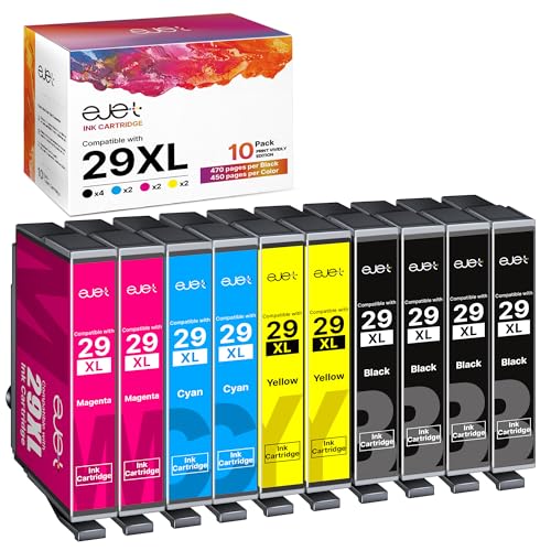 ejet 29XL Ink Cartridge Compatible for Epson 29 XL Ink for Expression Home XP-342 XP-335 XP-235 XP-442 XP-352 XP-247 XP-255 XP-332 XP-345 XP-432 XP-435 (Black Cyan Magenta Yellow,10 Pack)