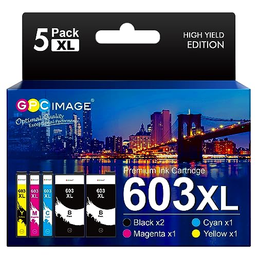 GPC Image Compatible Ink Cartridges Replacement for Epson 603 603XL for Workforce WF-2810dwf 2830dwf 2835dwf 2850dwf XP-3100 XP-4100 XP-2100 XP-2105 XP-3105 XP-4105(Black Cyan Magenta Yellow, 5-Pack)