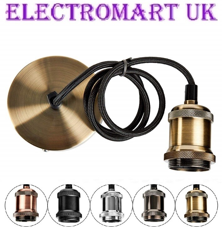 ANTIQUE COPPER RETRO HANGING CEILING ROSE PENDANT LIGHT BULB ES ES27 FITTING