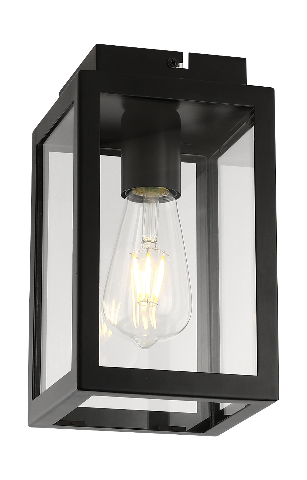 Porch Ceiling Light, Black Clear Glass, 1xE27/ES Bulb Cap (Bulb not Included)
