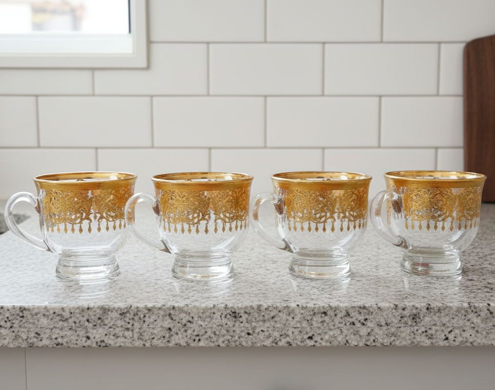 Turkish Tea Cups Set of 6 with Gold Pattern Arabic Tea Cups Espresso Gift Set