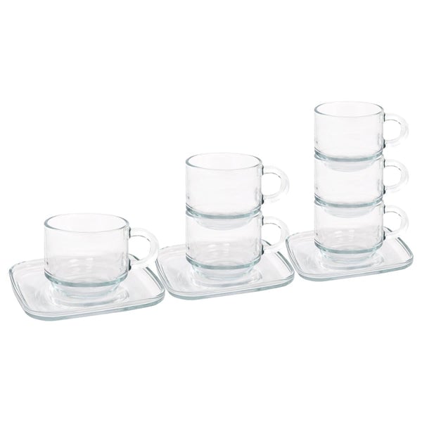 12pc 90ml Cozy Stacking Glass Espresso Cups & Saucers Set