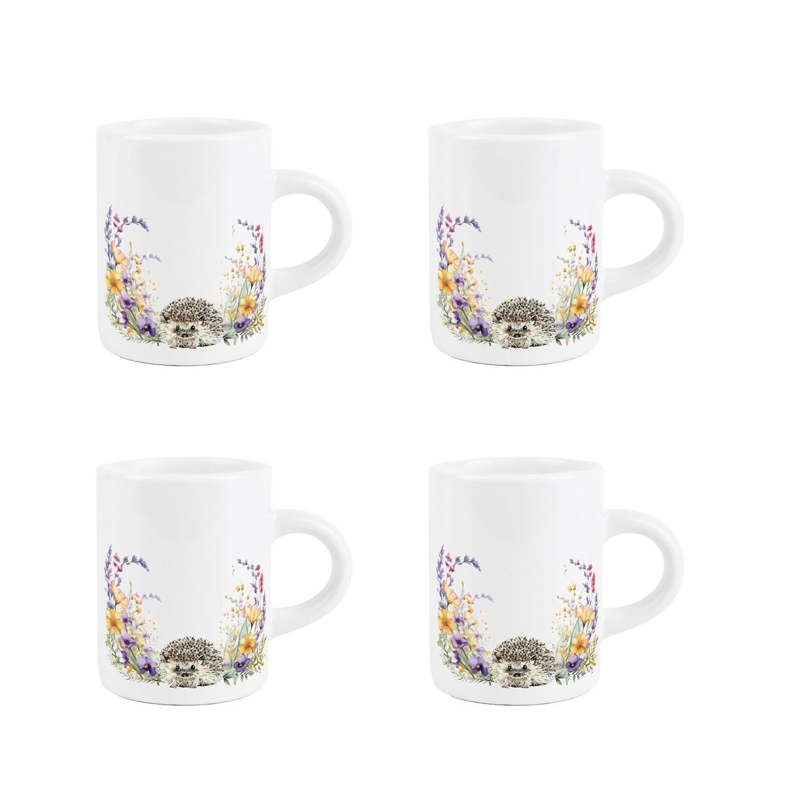 Floral Hedgehog Espresso Cups Set - Wildlife Gift Mini Ceramic Mugs Set of 4