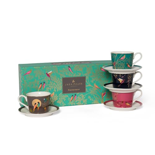 Sara Miller SMC79194-XG London Chelsea Collection 4 fl oz Espresso Cups & Saucers Set of 4, Porcelain, Gold