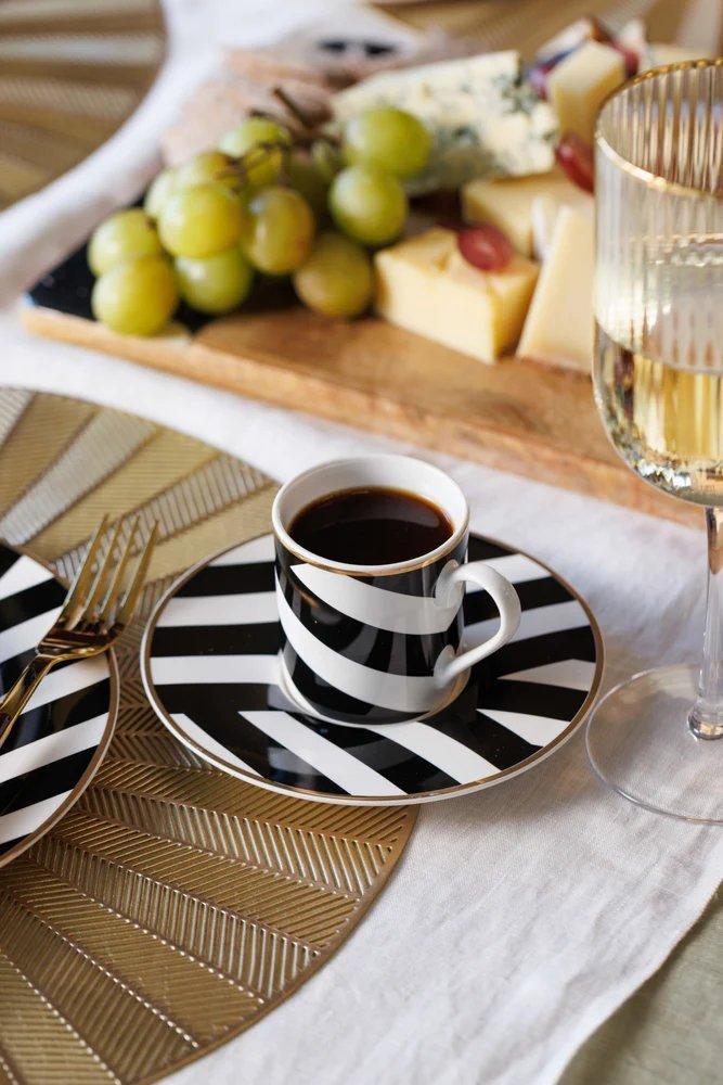 Luxe Deco Geometric Stripe China Espresso Cups and Saucers, Set of 2, 100ml