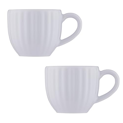 Price & Kensington Luxe Espresso Cups Set of 2, 85ml White Stoneware, Fluted Design, Heat-Retaining Espresso Mugs Presented in Gift Box